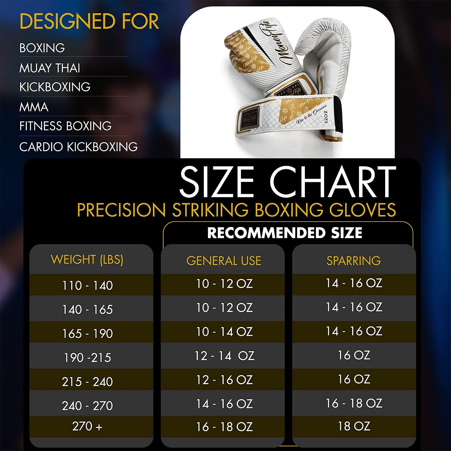 Size Chart - Designed For Boxing, Muay Thai, Kickboxing, MMA (Mixed Martial Arts), Fitness Boxing, and Cardio Kickboxing