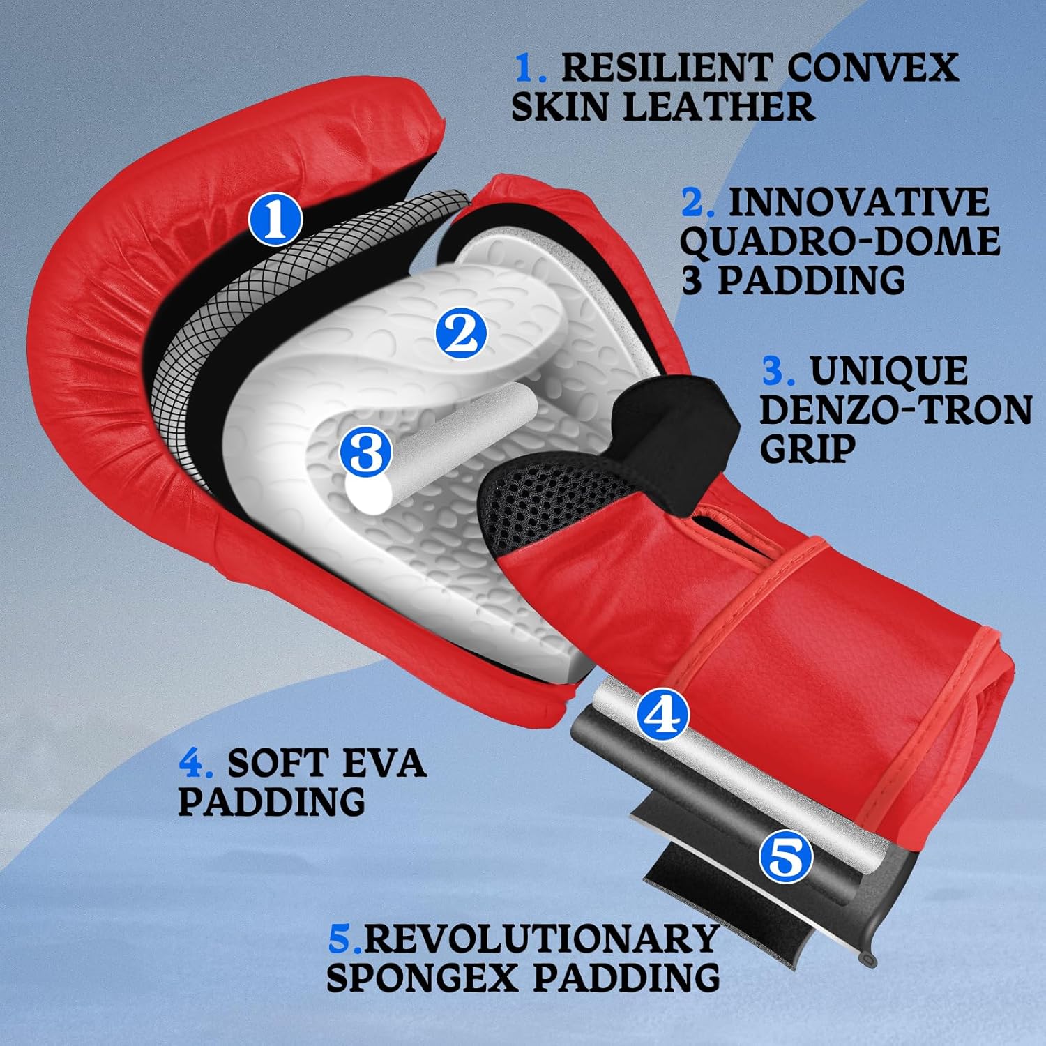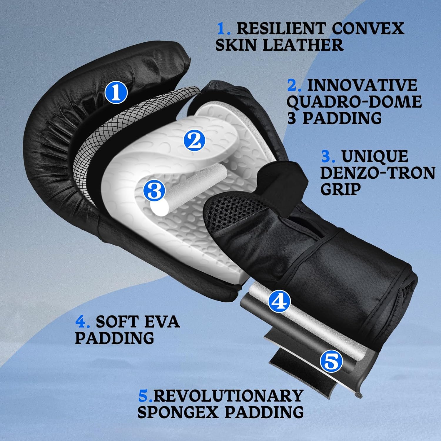 - POWER ALIGNED PUNCHES:The heavy punching bag gloves for women and men use DenZo-Tron Grip Bar in the upper palm area to allow the users to attain the optimal posture for powerful punches during training and competitions.