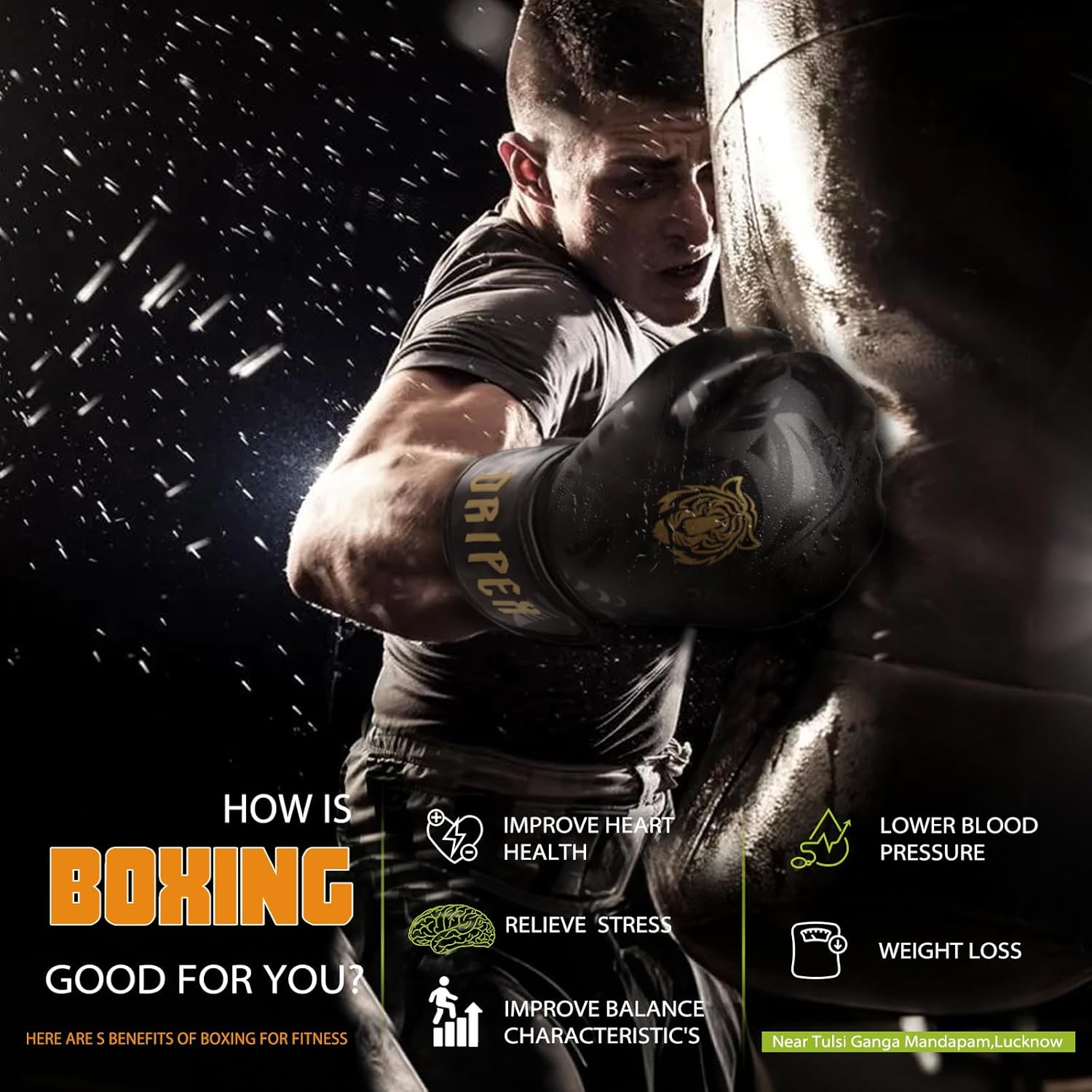 - 【Tear and Impact Resistance】The outer layer of Dripex boxing gloves is made of tear-resistant PU leather and matte coating. It is tough, durable and wear-resistant. It can withstand different punching forces and is easy to clean. It will be suitable for boxing, Muay Thai, MMA, kickboxing, punching bag training, etc